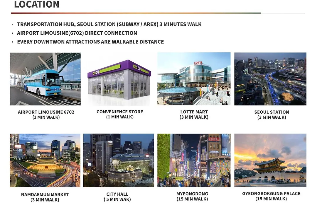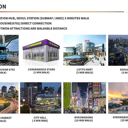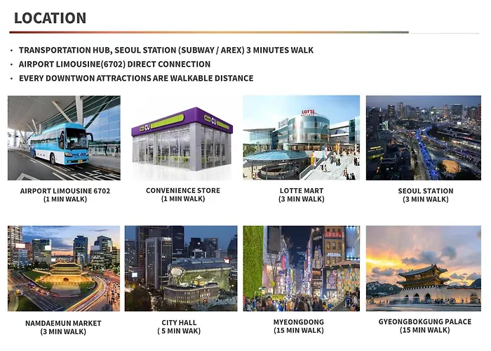 서울역 지하철역은 도보로 10 분 이내의 거리에 있으며서울특별시 여러 지역으로 쉬운 접근을 제공합니다.
